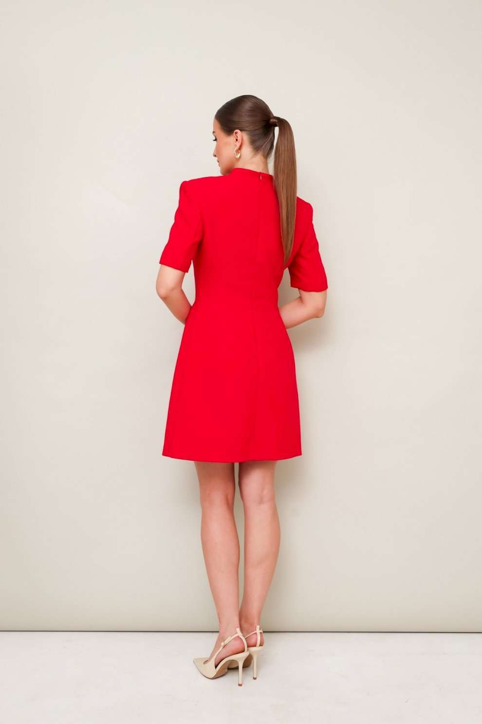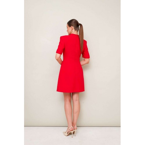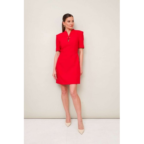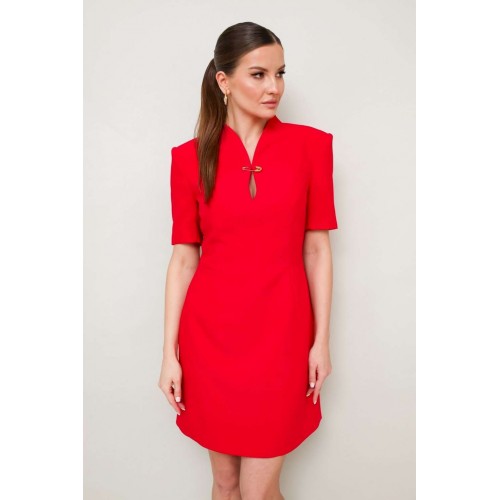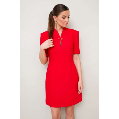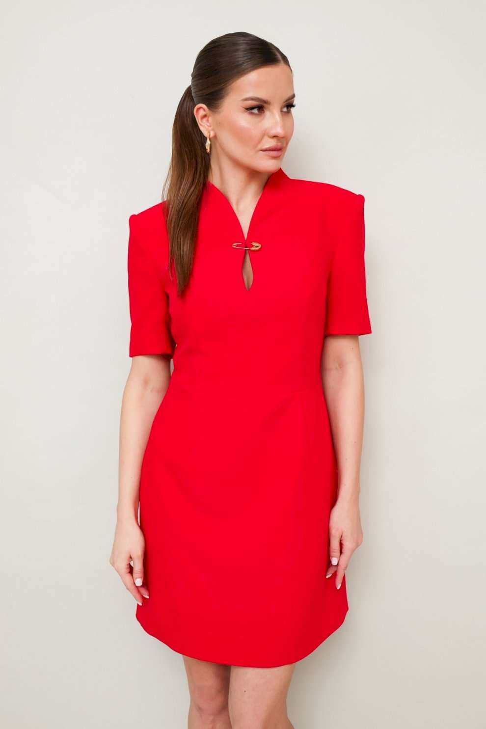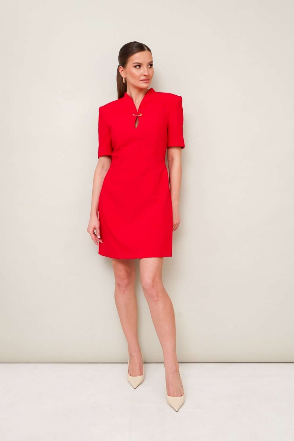Платье 11-487 от Pur Pur впечатляет своим современным дизайном. Коллекция бренда Pur Pur предлагает это мини-платье, выполненное из плательной ткани, которая сочетает полиэстер и вискозу. Изделие имеет горловину с цельнокроеной стойкой и вырезом «капля», украшенным декоративной брошью в виде английской булавки. Лиф переда с рельефами, подчеркивающими фигуру. Короткие двухшовные рукава и юбка А-образного силуэта делают платье идеальным для повседневной носки. В среднем шве спинки спрятана застежка на потайную молнию, что добавляет удобства. Нарядность красного цвета и хлопковая подкладка делают это платье отличным выбором для теплых сезонов и вечерних мероприятий.