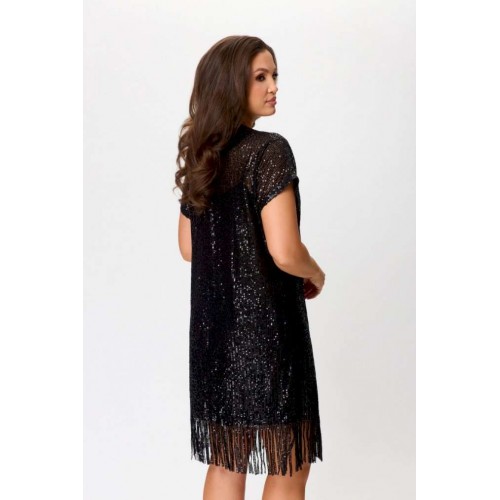 Платье нарядное с пайетками и бахромой прямого кроя, выполнено в комплектации из двух предметов. Линия плеча спущена. Вырез горловины v-образный. Нижнее платье полуприлегающего силуэта, на регулируемых бретелях. По линии груди вытачки. Длина платья: 99 см Длина рукава от горловины: 29 см