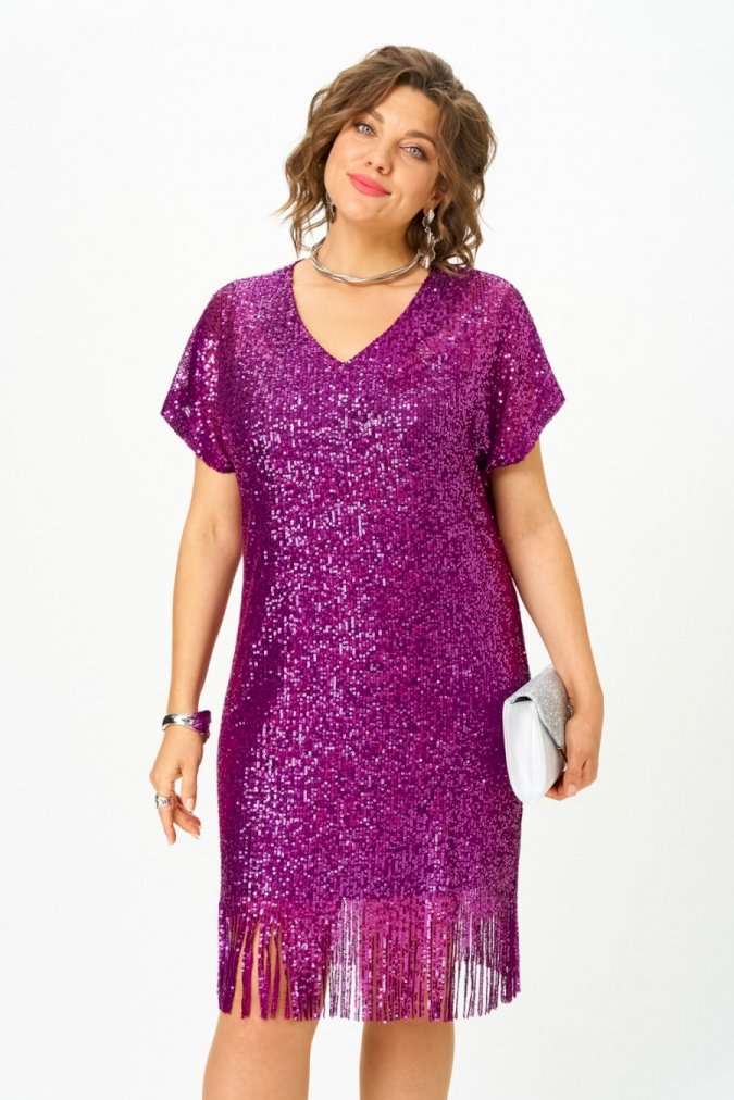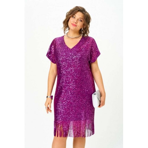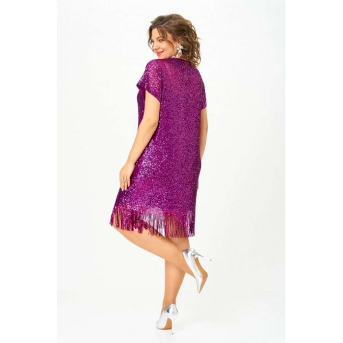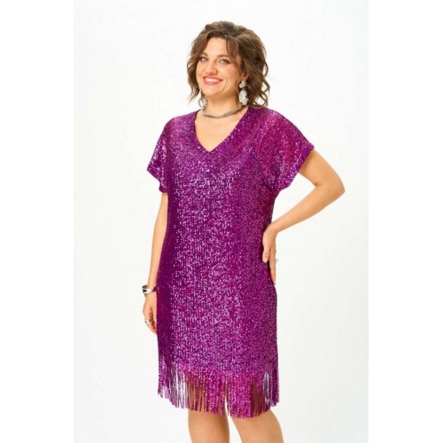 Платье нарядное с пайетками и бахромой прямого кроя, выполнено в комплектации из двух предметов. Линия плеча спущена. Вырез горловины v-образный. Нижнее платье полуприлегающего силуэта, на регулируемых бретелях. По линии груди вытачки. Длина платья: 99 см Длина рукава от горловины: 29 см