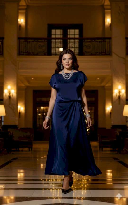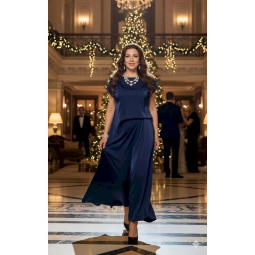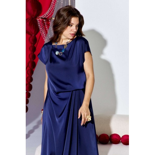 Стильное платье идеально подходит для нарядного образа вечернего мероприятия. Легкое, скульптурной формы оно игриво ведет себя в движении плавностью линий и легкостью. Платье без застежки полуприлегающего силуэта. Подкладка из основной ткани в верхней части лифа. Высокая посадка на талии придает свободу в движении, элегантный силуэт и комфорт в движении. Главным акцентом является изящно заложенные складки на талии. Длина платья 140 см, ширина плеча 19,5 см (р 50-54), 21 см (р 56-60).