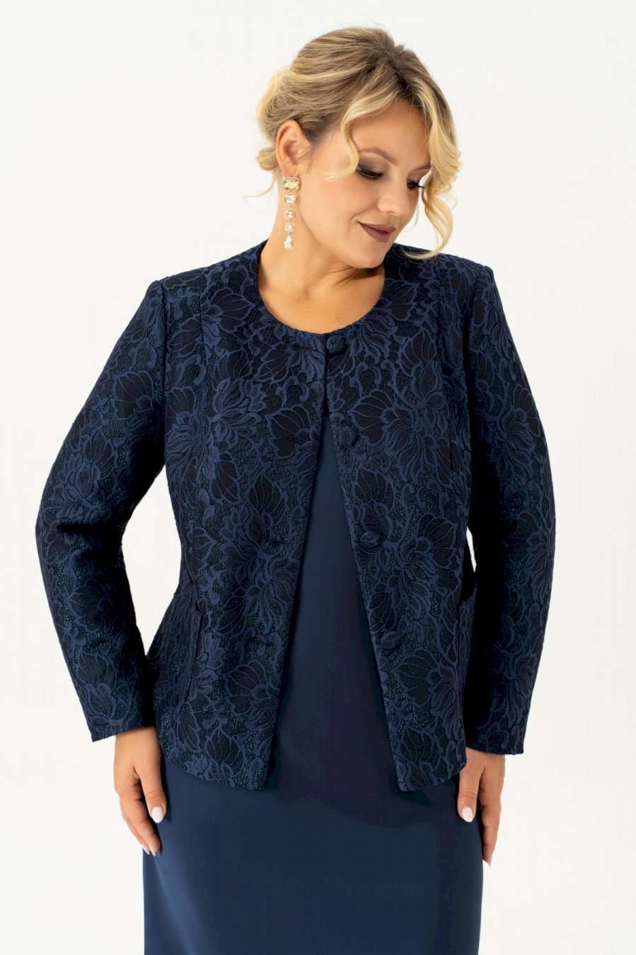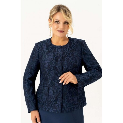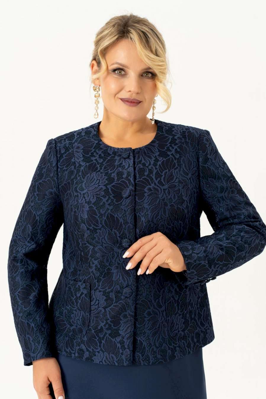 Красивый и стильный жакет из кружевного жаккарда подойдет и для строгого образа, и для создания светлого, яркого и нежного лука с романтичными мотивами. Жакет короткий, полуприлегающего силуэта на подкладке. Спинка со средним швом. По переду жакета есть рельефные швы от плеча. Застёжка на петли и пуговицы. Рукав втачной , длинный, двухшовный. Горловина круглая, смотрится очень актуально и эффектно в сочетании с накладными карманами. Этот жакет подойдет и к брюкам и к платью, что позволяет создать много шикарных образов. Выбор этого стильного жакета станет замечательным дополнением вашего гардероба для особых случаев, обеспечивая Вам стиль и комфорт.