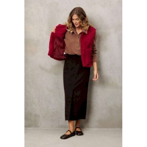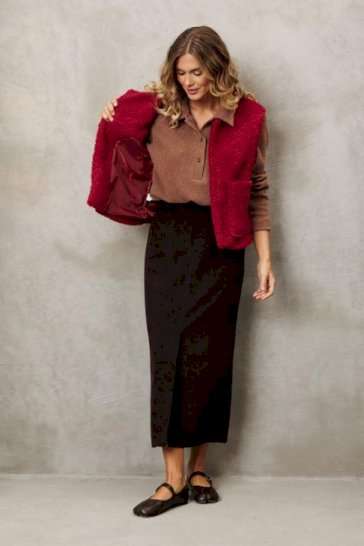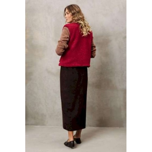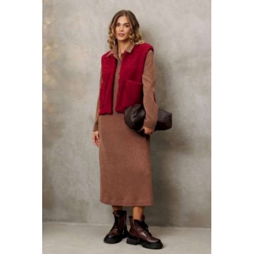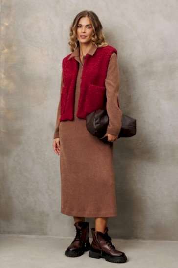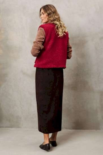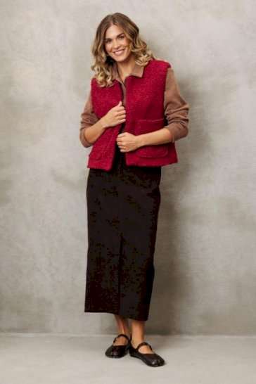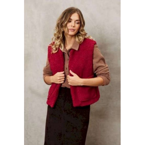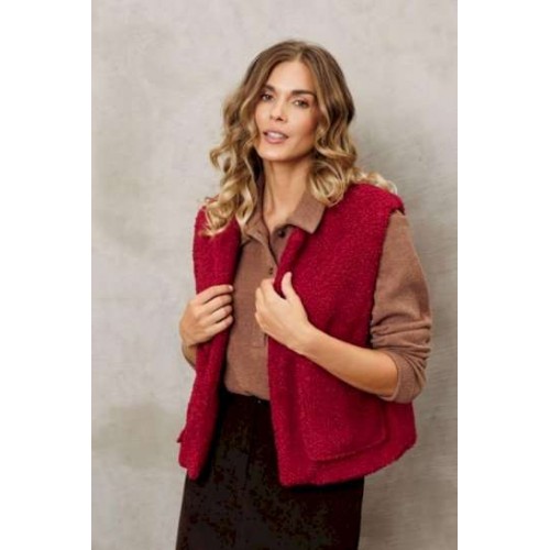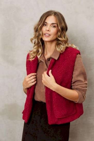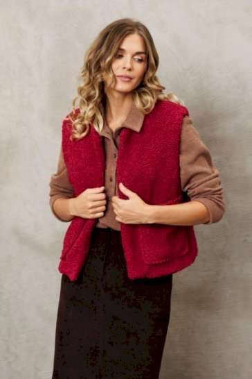 Жилет прямого свободного силуэта из теплой ткани \"барашек\". Перед с настрочными карманами. Застежка на 3 петли и пуговицы. Жилет на подкладке. Длина жилета 52 см.