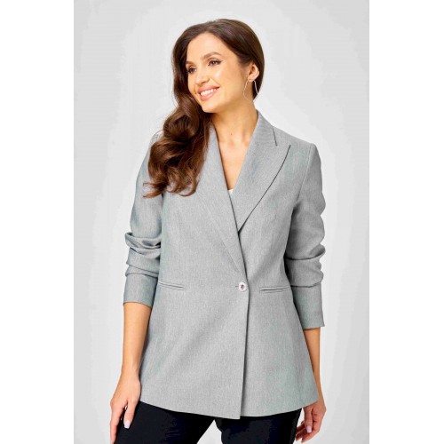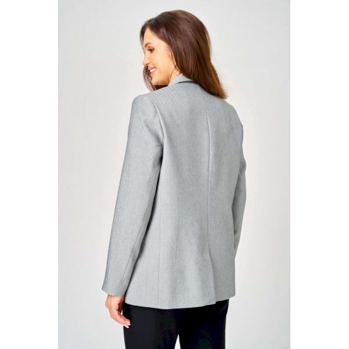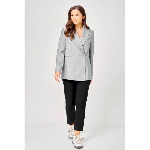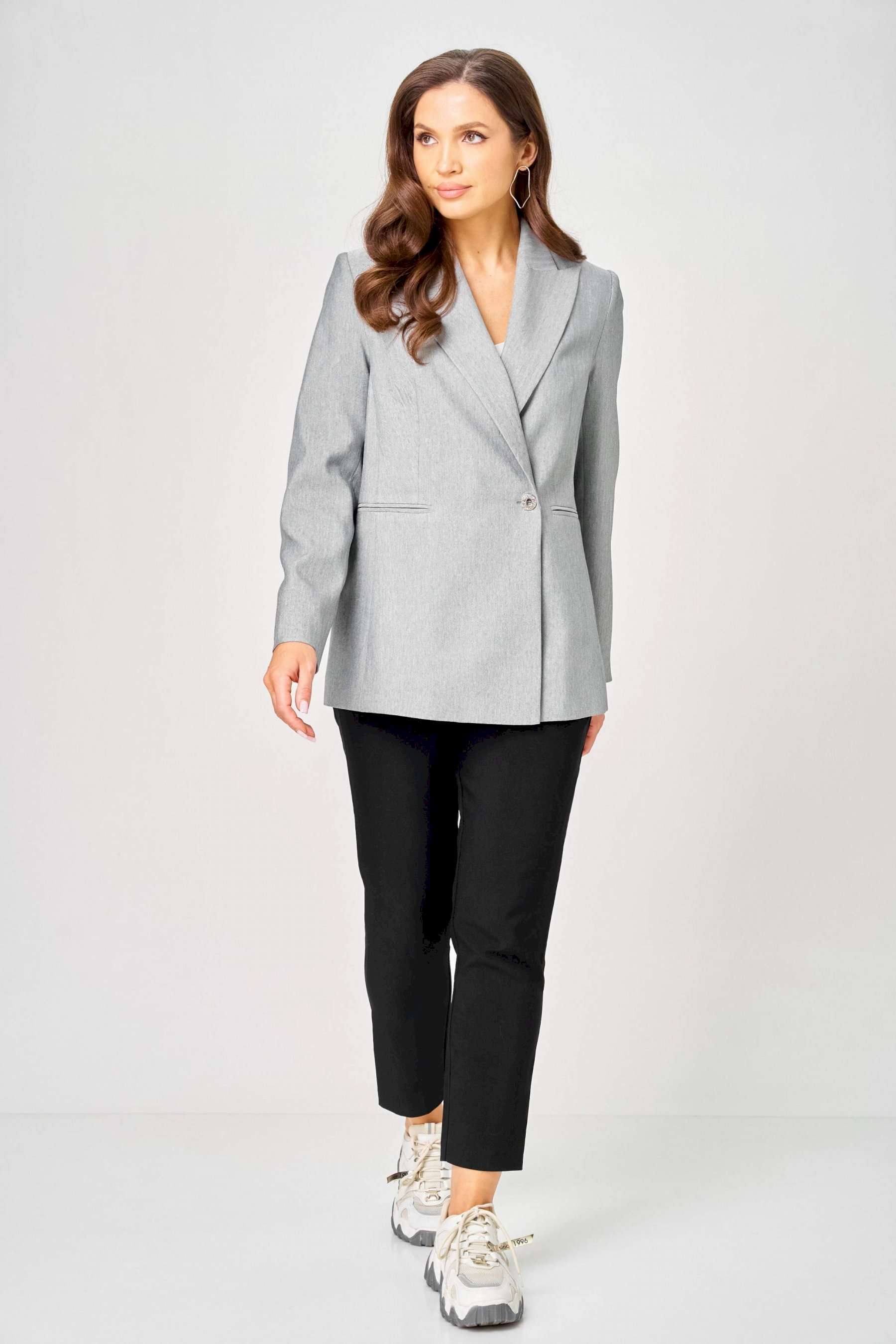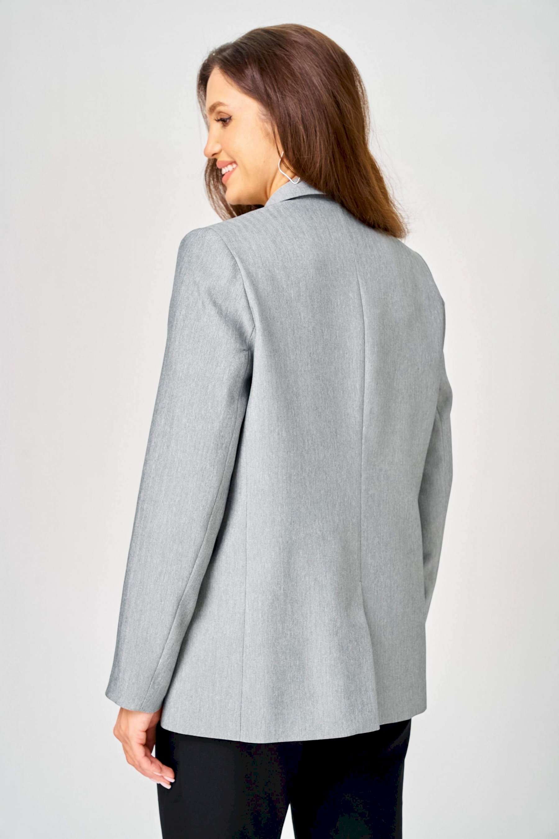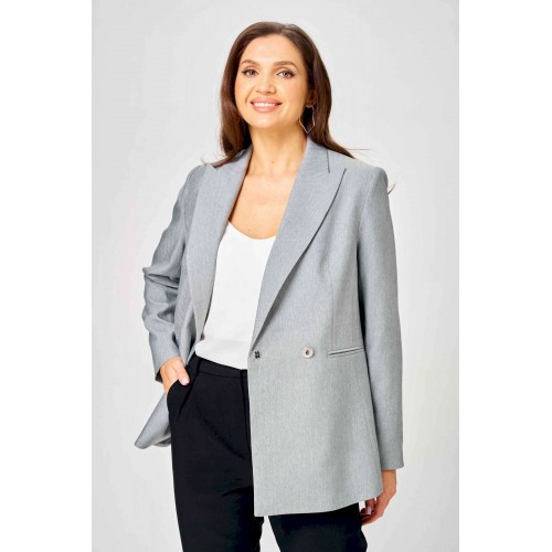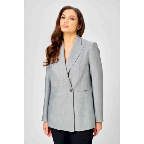 Жакет изготовлен из костюмной ткани, прямого силуэта, на подкладке, двухбортный, застежка на декоративную пуговицу и потайную кнопку. Перед с нагрудными выточками, входящими в прорезной карман в рамку, с боковыми рельефами, переходящими на спинку. Спинка со средним швом и шлицей. Воротник отложной с фигурными лацканами. Рукав втачной, двухшовный, на подкладке. Лаконичный фасон и женственность, индивидуальность и стиль - именно такими словами можно охарактеризовать этот жакет, который идеально подойдёт и для работы в офисе, и для торжественного случая.
