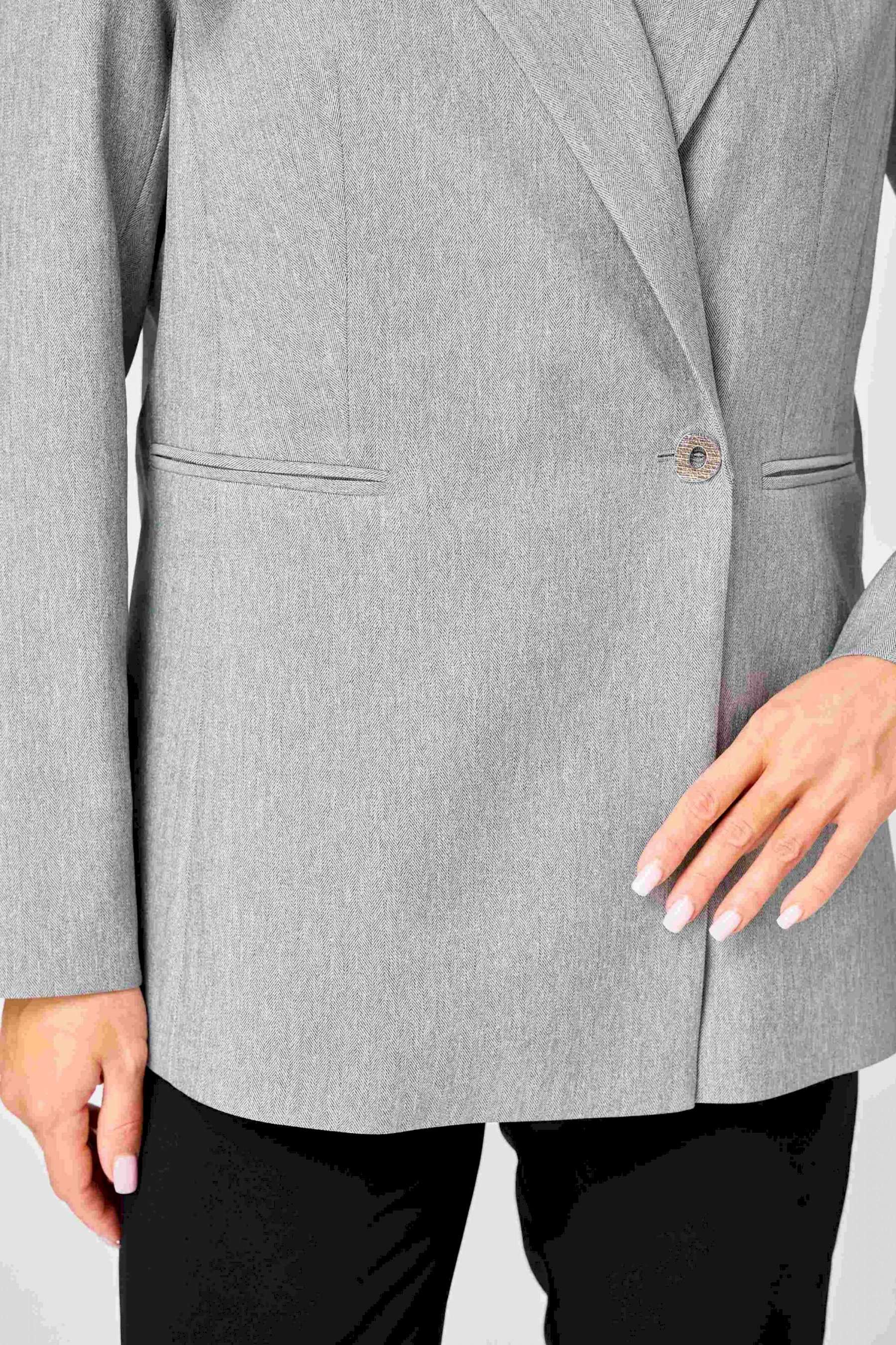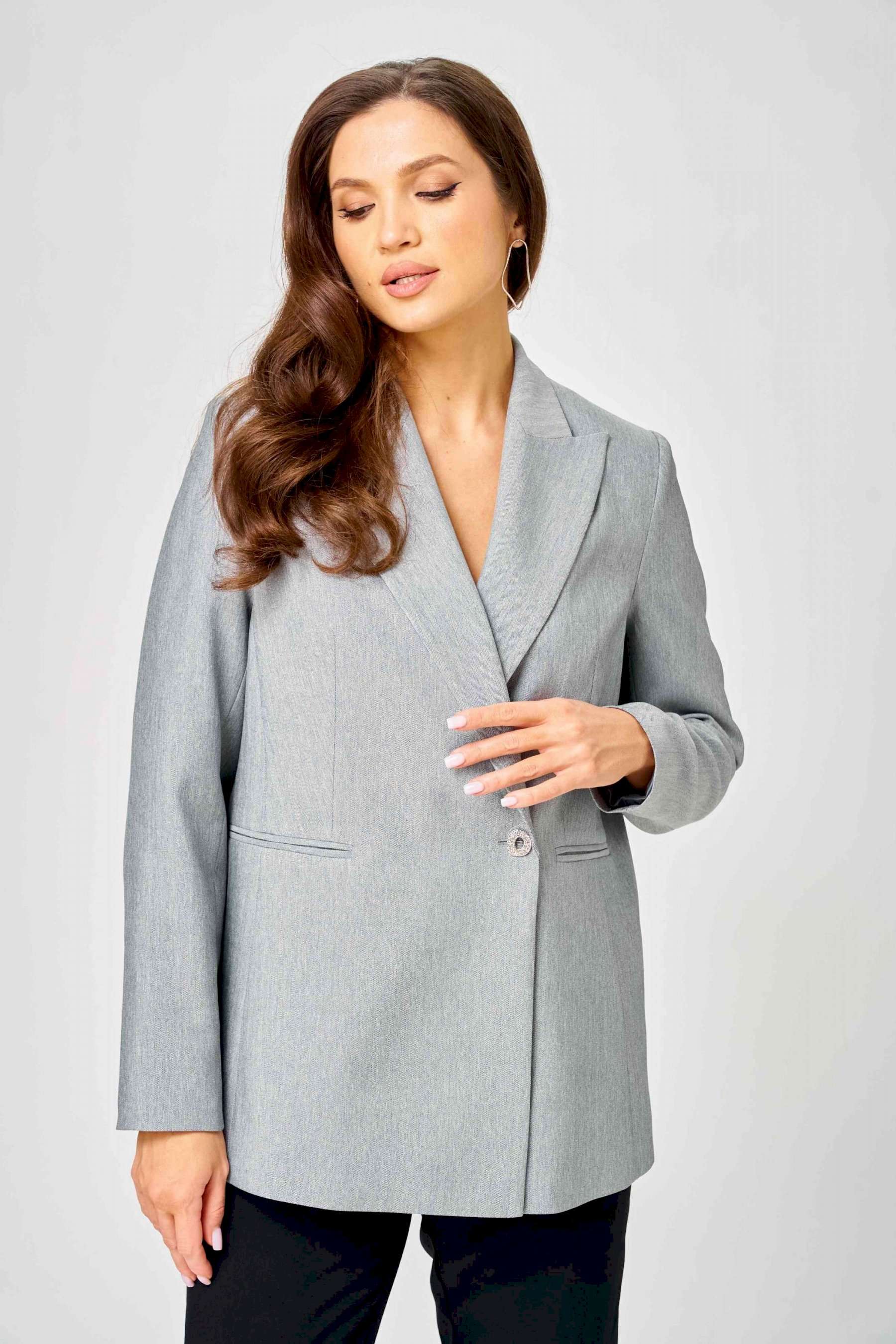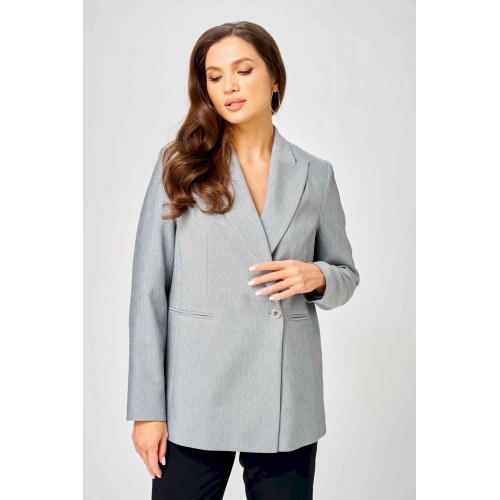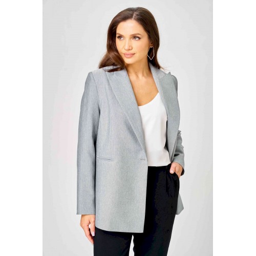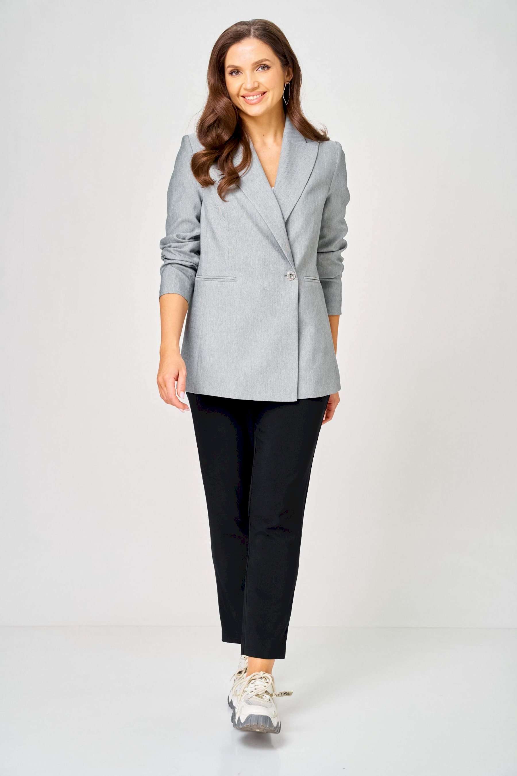 Жакет изготовлен из костюмной ткани, прямого силуэта, на подкладке, двухбортный, застежка на декоративную пуговицу и потайную кнопку. Перед с нагрудными выточками, входящими в прорезной карман в рамку, с боковыми рельефами, переходящими на спинку. Спинка со средним швом и шлицей. Воротник отложной с фигурными лацканами. Рукав втачной, двухшовный, на подкладке. Лаконичный фасон и женственность, индивидуальность и стиль - именно такими словами можно охарактеризовать этот жакет, который идеально подойдёт и для работы в офисе, и для торжественного случая.