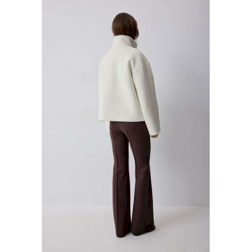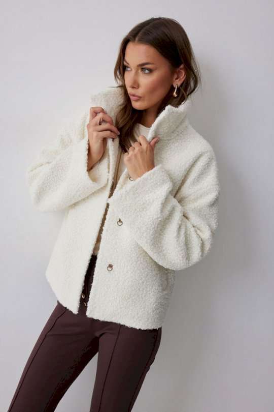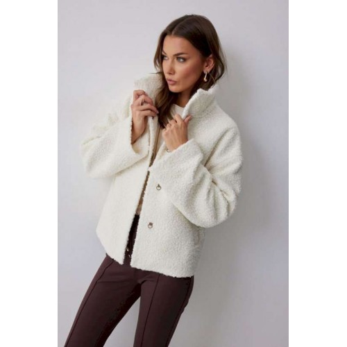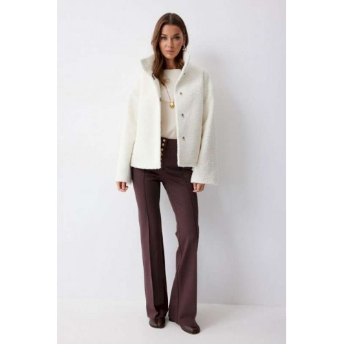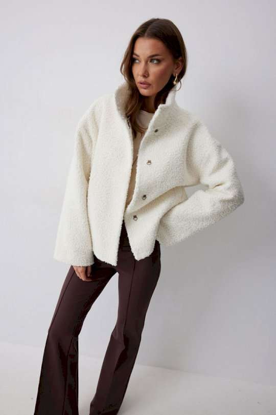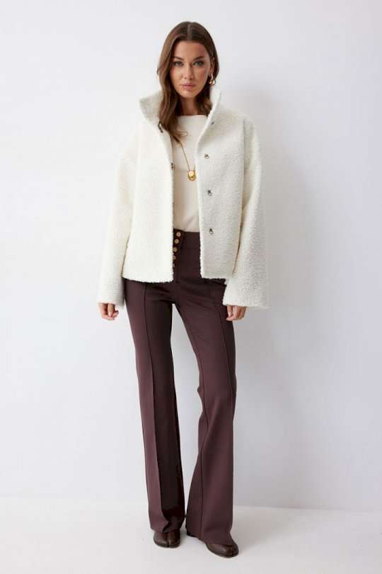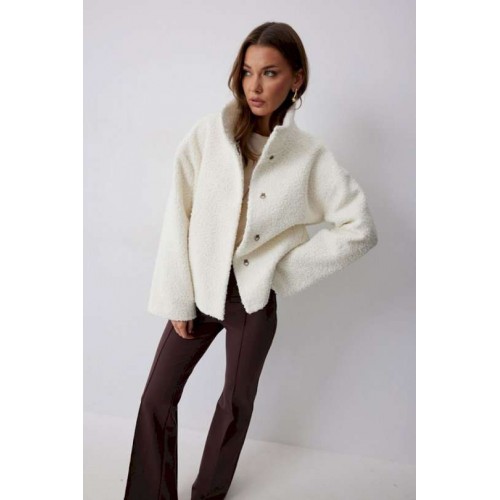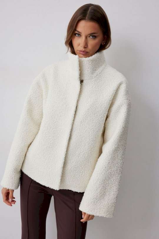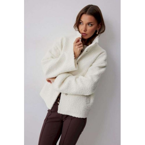 Жакет прямого силуэта из букле на трикотажной основе. Воротник-стойка. Центральная застежка на крючки. Рукав со спущенной линией плеча. По переду прорезные карманы. Жакет на подкладке. Обращаем ваше внимание, что фурнитура может отличаться от фото. Подходит на рост 164-170 см. Длина жакета (44-48р – 59см)(50-54р - 63см). Длина рукава от горловины (44-48р – 74см)(50-54р - 75см).