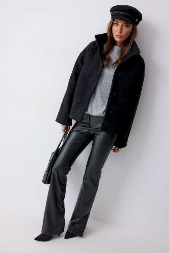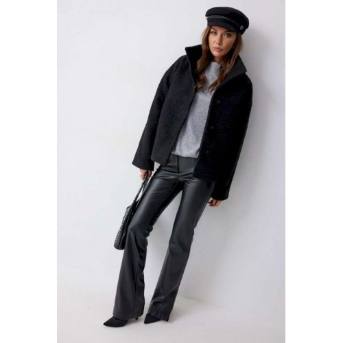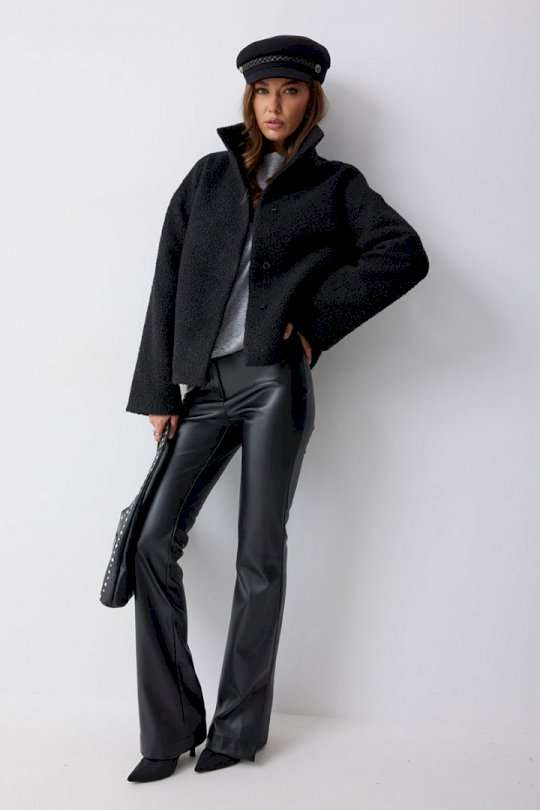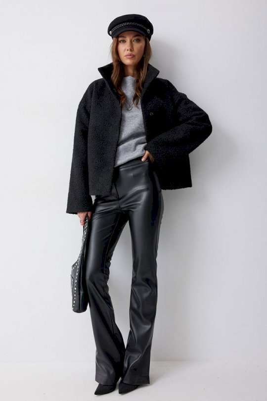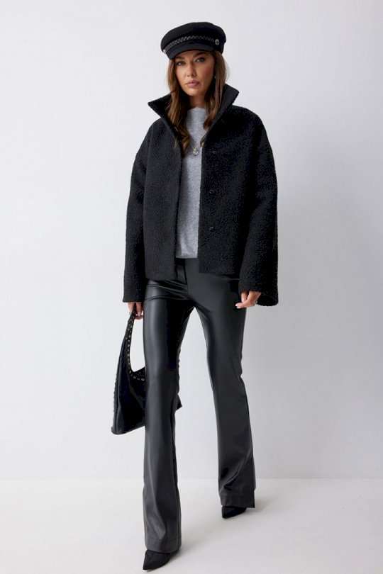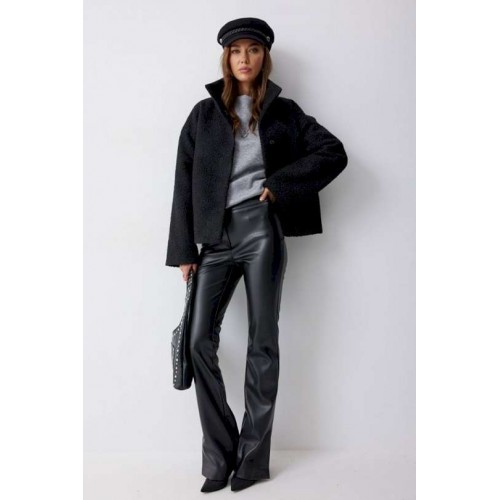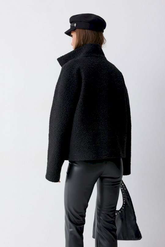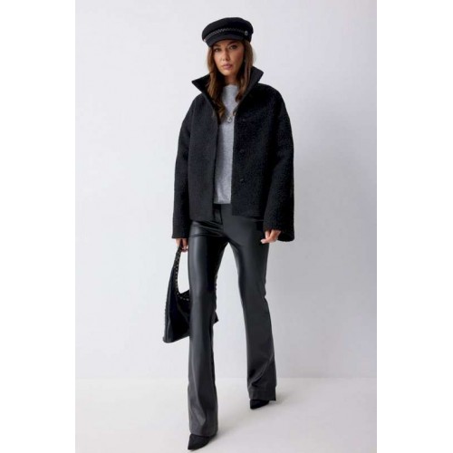 Жакет прямого силуэта из букле на трикотажной основе. Воротник-стойка. Центральная застежка на крючки. Рукав со спущенной линией плеча. По переду прорезные карманы. Жакет на подкладке. Обращаем ваше внимание, что фурнитура может отличаться от фото. Подходит на рост 164-170 см. Длина жакета (44-48р – 59см)(50-54р - 63см). Длина рукава от горловины (44-48р – 74см)(50-54р - 75см).